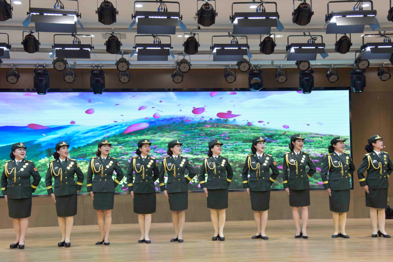 演出在雄浑的《红旗颂》交响乐中正式拉开帷幕,气势磅礴的《四首军歌联唱》瞬间点燃全场的氛围。经典歌曲《我爱你中国》、《萨日朗花开红火火》和《永远的赞歌》伴着专业歌手的演唱,让现场的观众掌声不断。老兵们还表演了《打靶归来》和《游击队之歌》等军旅歌曲,这些军旅代表曲目的铿锵旋律在老兵们整齐划一的演绎中让人深受鼓舞。随着京剧《江姐》选段《红梅赞》、舞蹈《万紫千红》和诗朗诵《曾经当过兵》等节目的演出,为现场观众带来了极具特色的视听感受。大型舞蹈《红旗颂》将整场慰问演出推向了高潮,红旗漫卷、舞动初心,演员们用舞蹈表达共产党人在岁月长河中接力传承,用深情演绎诉说着无比忠诚。